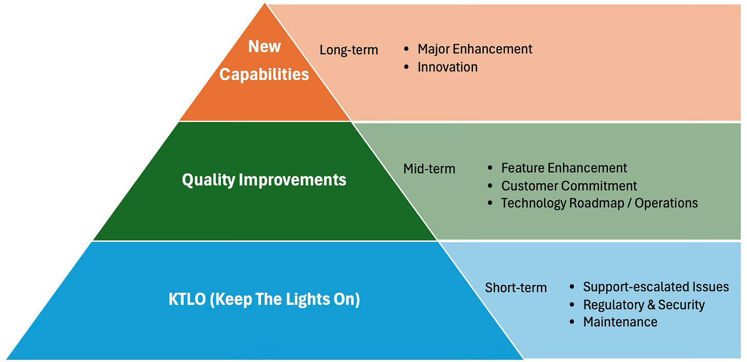 Once an organization has categorized its investments, it needs a framework to operationalize the management of these allocations. This is often overlooked and poorly managed. Left to their own devices, teams tend to over rotate on one area versus another.